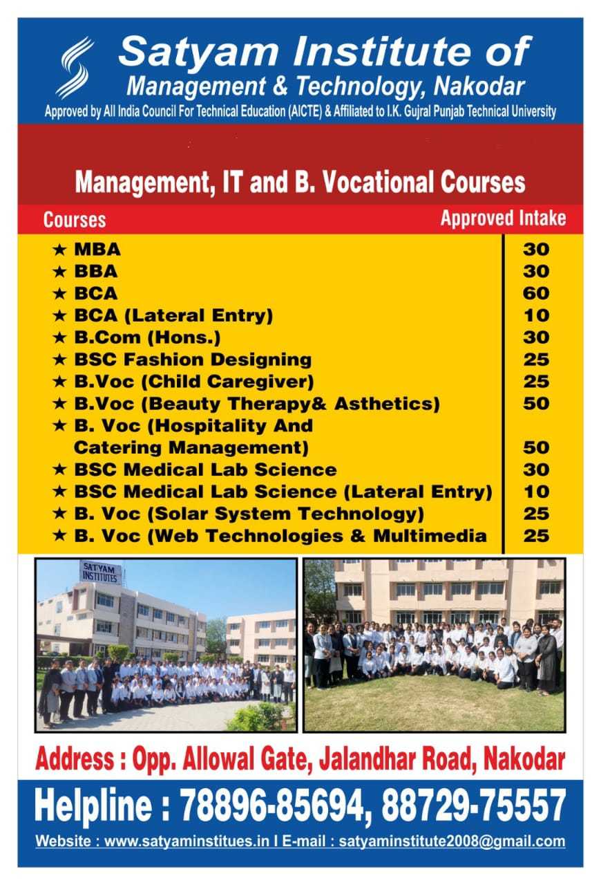 In Satyam Group of Institutes we work for the development of all aspects of an individualโs personality. We are committed towards the holistic education which aims to instil appropriate and desirable ethical values to makeย students productive and responsible members of society.